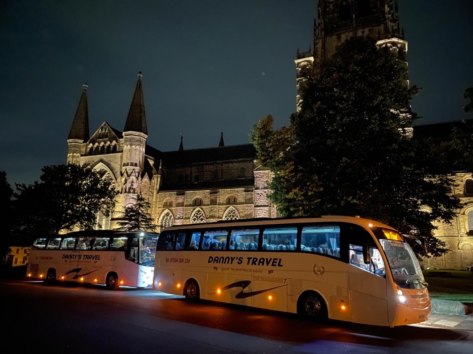Our buses ready to take us down the winding streets of Durham and off to Edinburgh