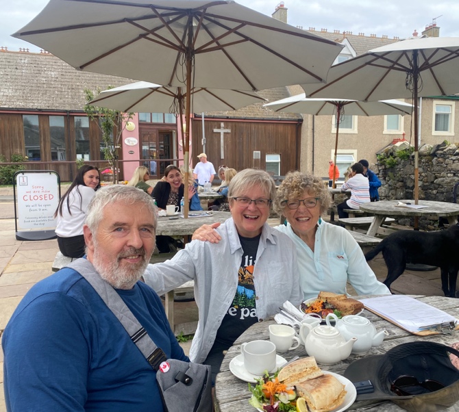 Rick and Barb Hilts took fellow Singer Mireille (middle) on a trip to see Lindisfarne