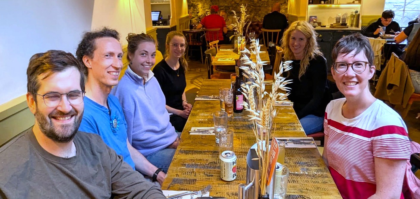 Max, Andy, Maya, Erica, Michelle, and Erinn (left to right) at Andy’s birthday dinner.